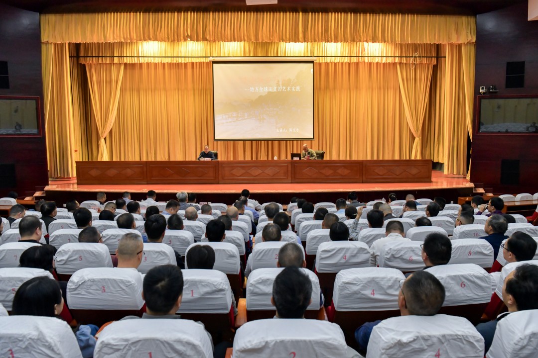 讲座邀请著名当代艺术家、雕塑家陈文令作专题讲座,他以“艺术赋能城乡发展——地方全球主义的艺术实践”为主题,重点分享其在安溪金谷溪岸艺术公园的实践案例。这个由他设计建造的公益性艺术项目,秉持“就地取材”理念,将溪中石头、废弃民房材料转化为便民设施与艺术装置,溪流与公园构成了“没有围墙的活态博物馆”,十分具有代表性和启迪性。讲座中,陈文令还结合自身多年艺术乡建经验与当代陶瓷艺术创新探索,分享了诸多案例。他指出,在全球化与在地化交织的当下,艺术赋能城乡发展需要打破“单向输出”的思维定式,既要深入挖掘地域文化的独特基因,又要以开放视野吸收全球艺术语言,实现“在地性”与“国际性”的有机融合,为现场听众带来一场兼具思想深度与实践价值的学术讲座。