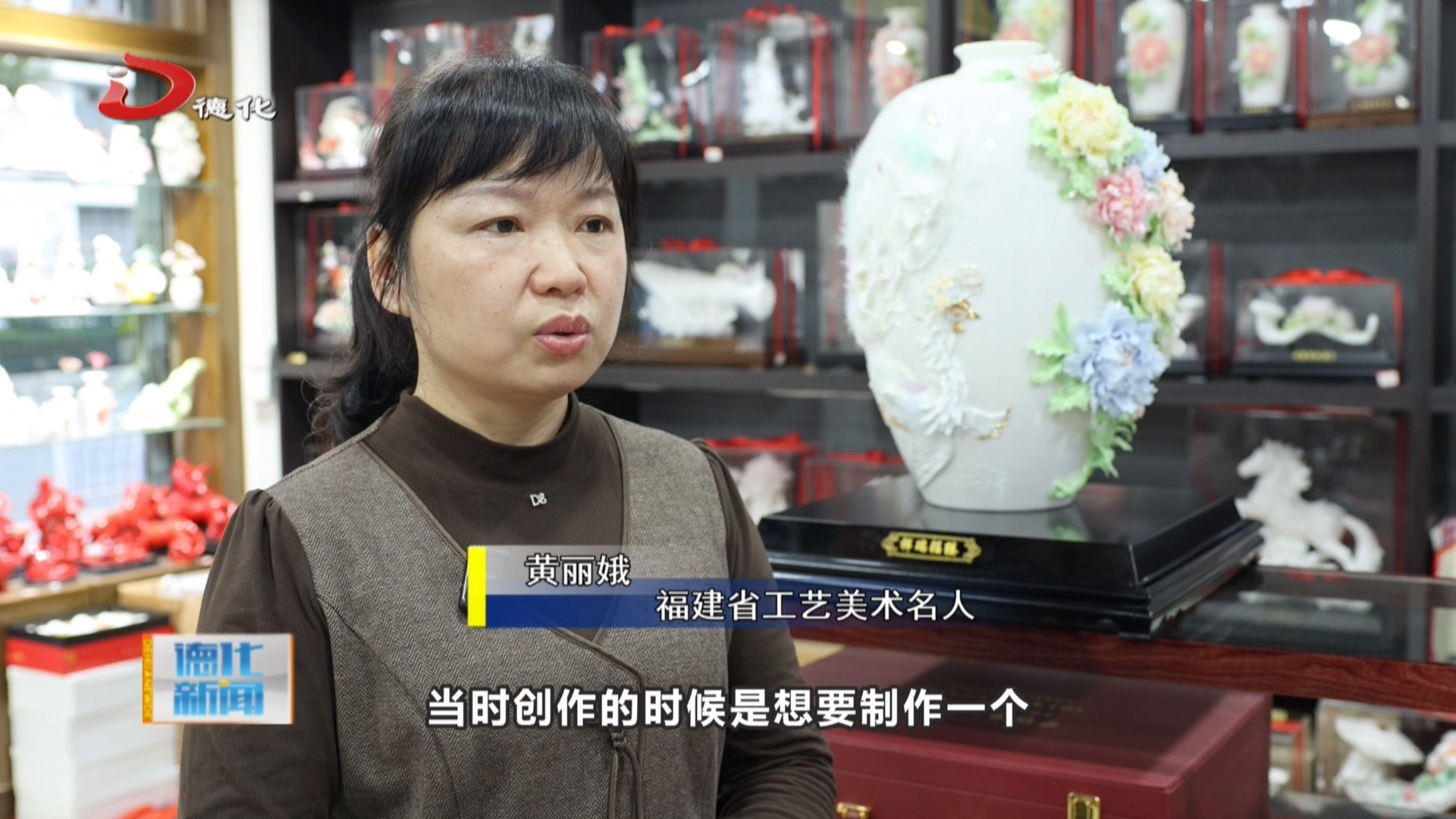 在第十三届福建省工艺美术精品“争艳杯”大赛中,福建省工艺美术名人黄丽娥创作的陶瓷花瓶《祥瑞福辏》荣获工艺陶瓷类金奖,作品采用独特的设计构思与精湛的手工技艺,生动展现了德化陶瓷艺术的非凡魅力。