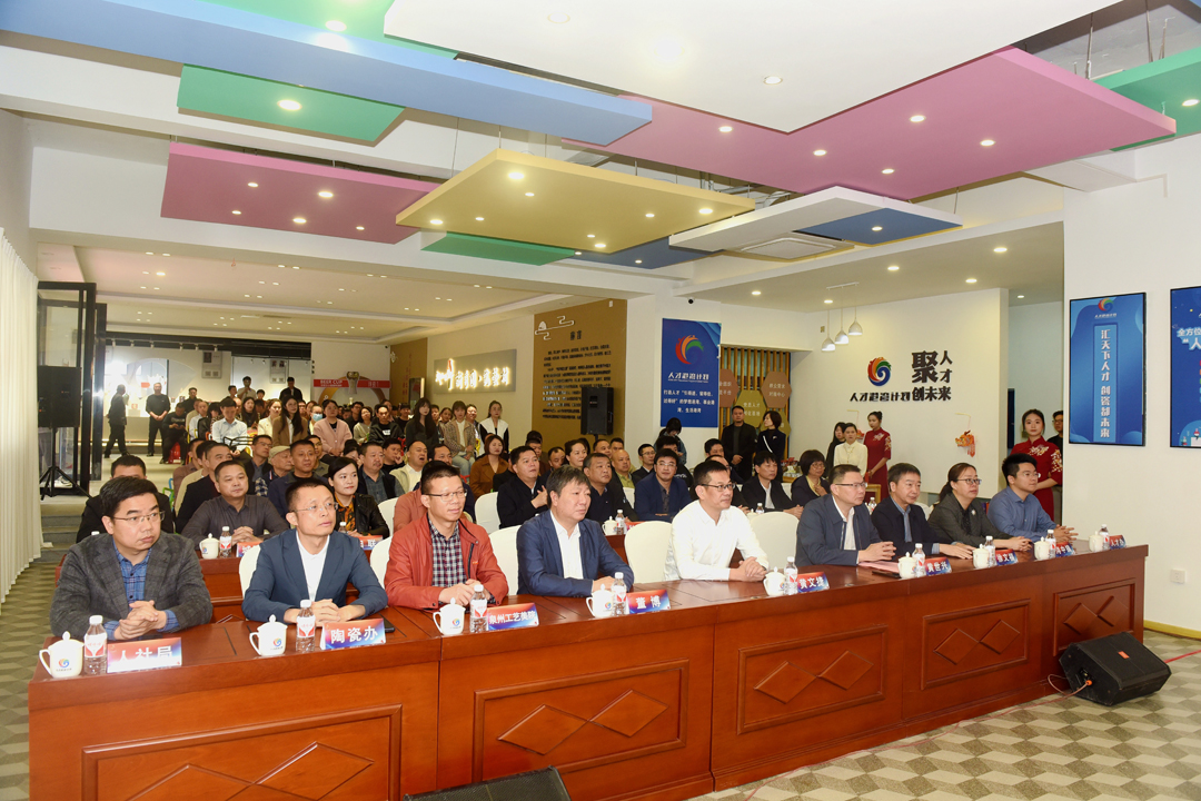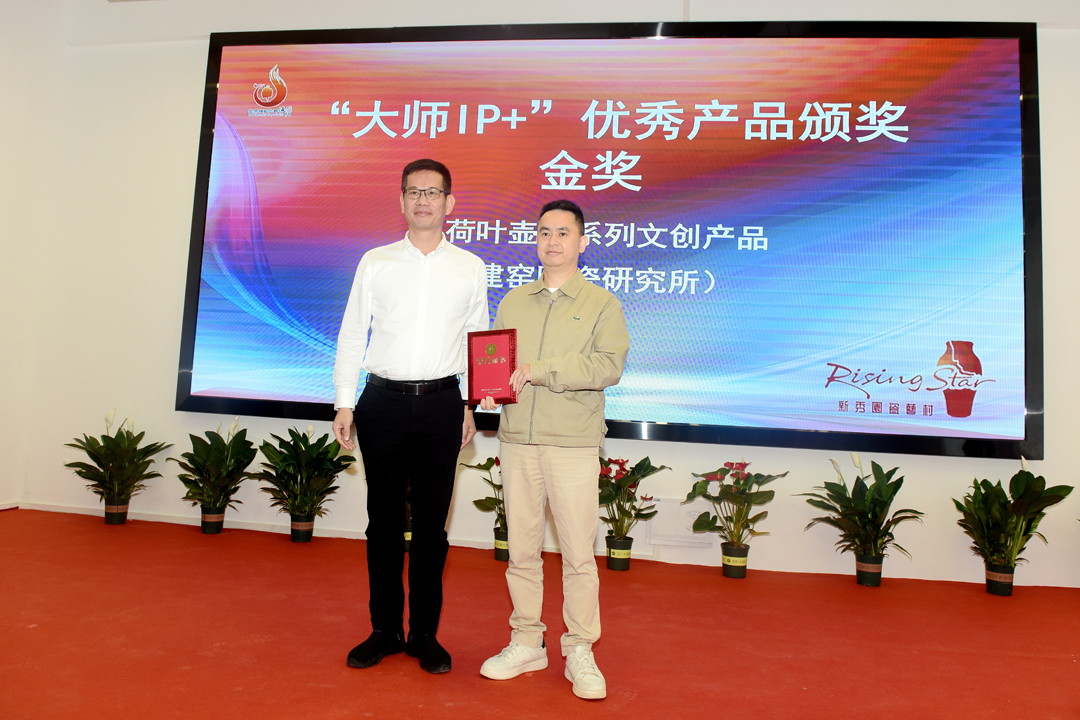 活动为金奖《荷叶壶》、银奖《百壶》《一跃惊鸿》《瑞兔丰年》、铜奖《不忘初心办公杯》《团团圆圆旅行茶具》《螭龙茶具套组》《大苑天地艺术养生品杯》《映日茶具》等9件(套)“大师 IP+”优秀系列文创产品颁奖,分别为郑清海陶瓷艺术创作基地,陈为坦、苏巧龙两家“大师IP+”优胜工作室,陈仁海、陈明良两家三好大师工作室,瓷花、关公两座主题艺术馆等7家工作室(基地、艺术馆)进行授牌表彰。同鑫陶瓷、唐丰陶瓷、拓牌瓷业分别与省工艺美术大师叶云凤、连德理、张明贵签署项目合作协议,吾游家居与中国陶瓷艺术终身成就奖获得者寇富平大师也达成合作,成功签约。