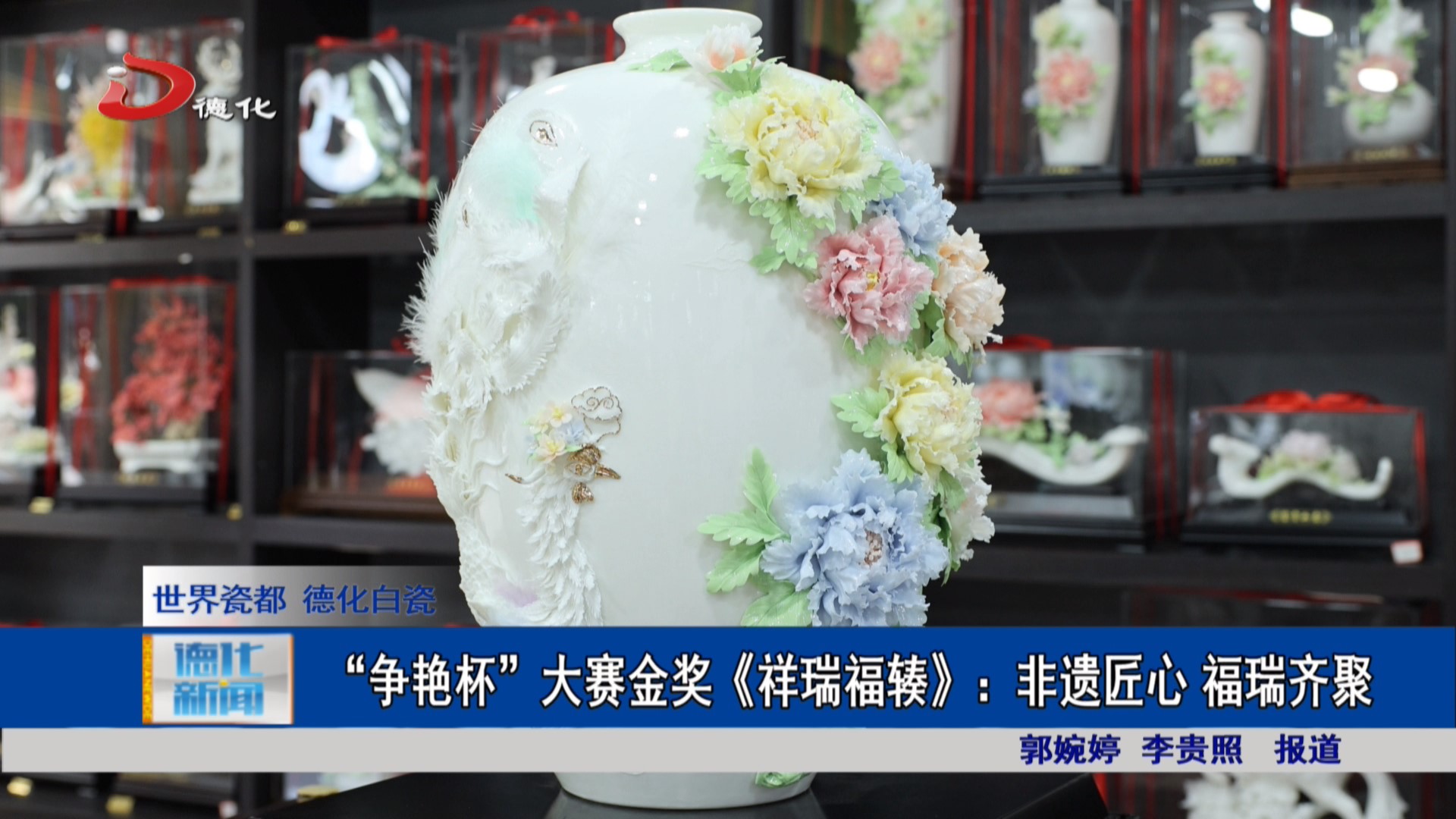 在第十三届福建省工艺美术精品“争艳杯”大赛中,福建省工艺美术名人黄丽娥创作的陶瓷花瓶《祥瑞福辏》荣获工艺陶瓷类金奖,作品采用独特的设计构思与精湛的手工技艺,生动展现了德化陶瓷艺术的非凡魅力。