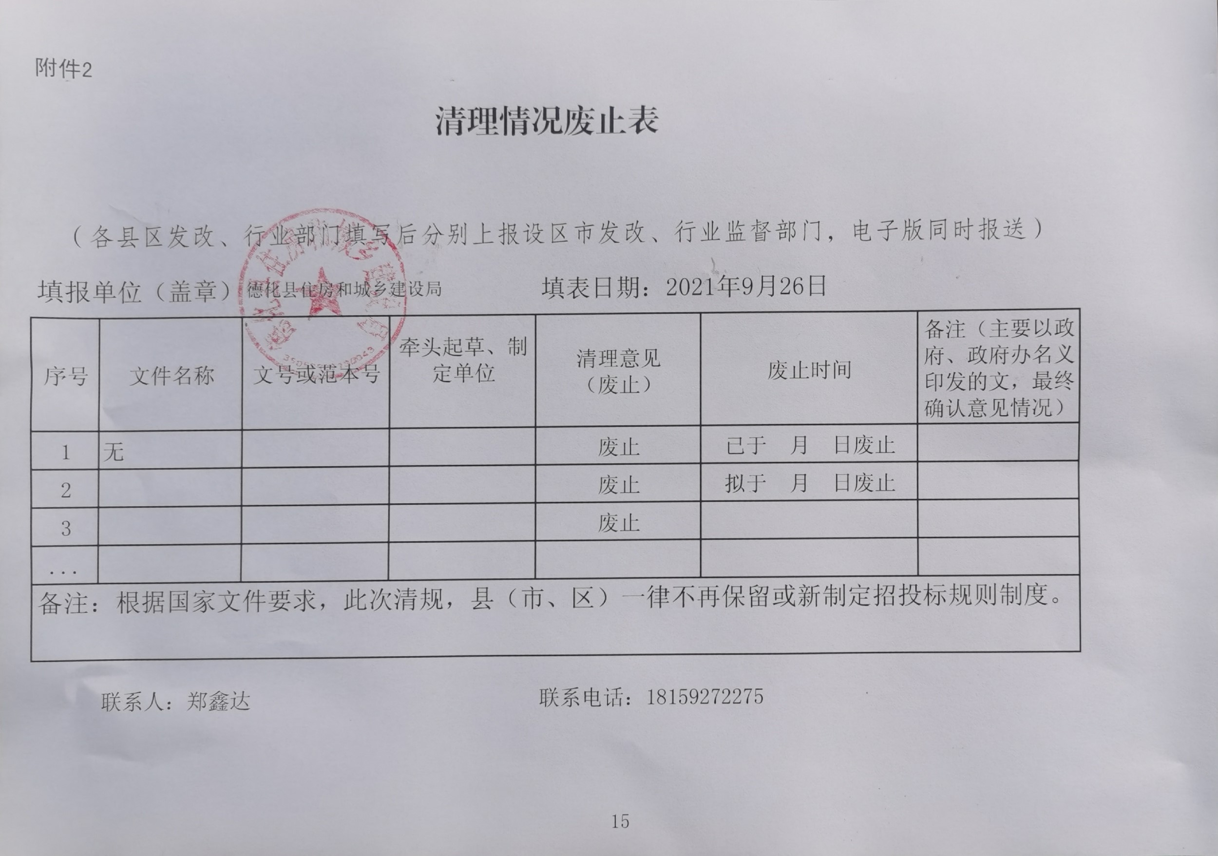 德化县住房和城乡建设局规范性文件清理情况公示
