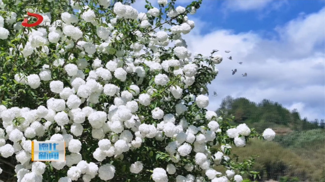 眼下,上涌镇曾坂村迎来中华木绣球盛花期。房前屋后、溪边道旁,数百株木本绣球次第绽放,硕大花球缀满枝头,如积雪压枝、玉盘满树,为这座传统古村落披上一袭洁白春装。