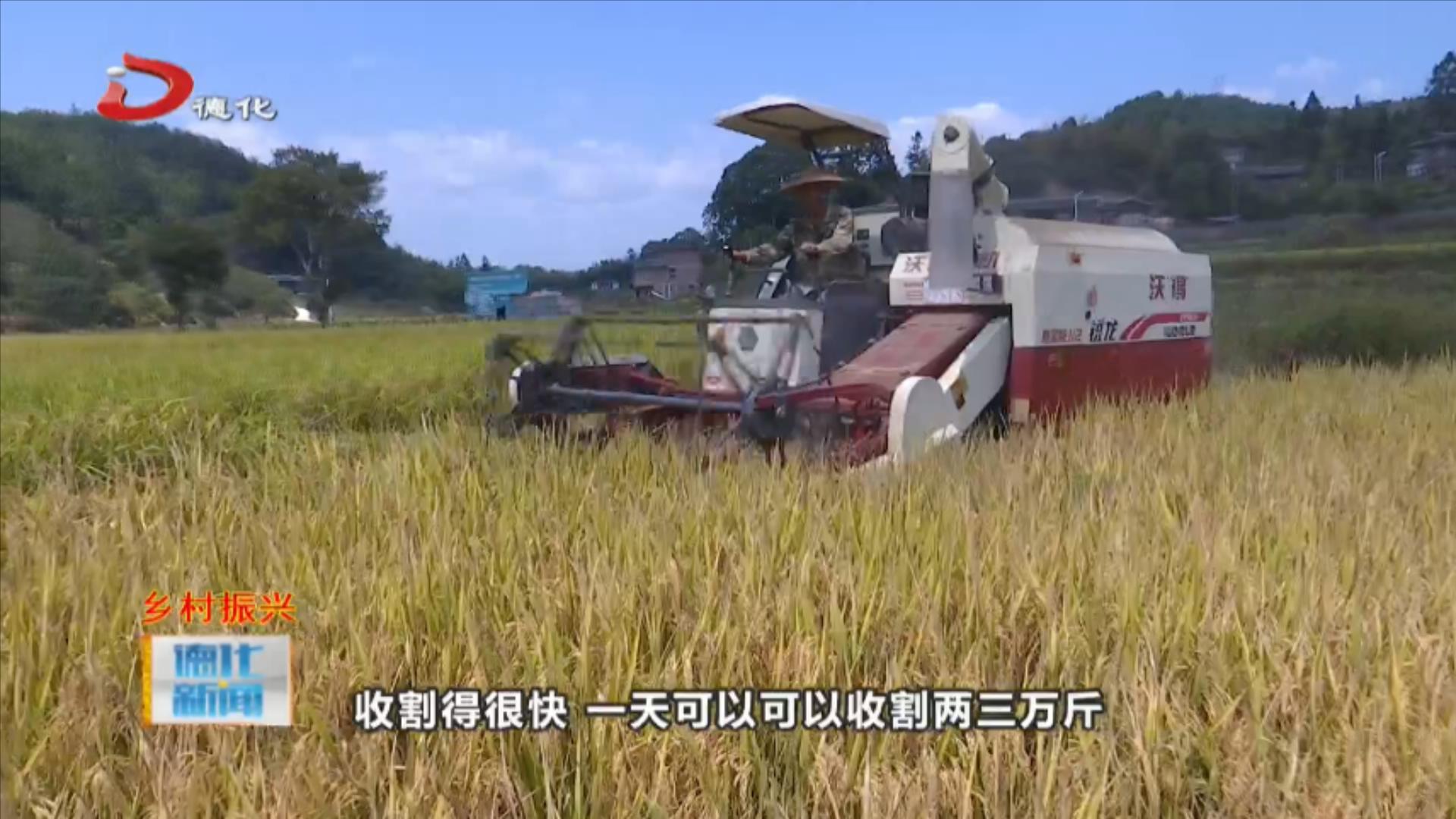 春美乡尤床村:千亩水稻陆续成熟 机械助力收割忙