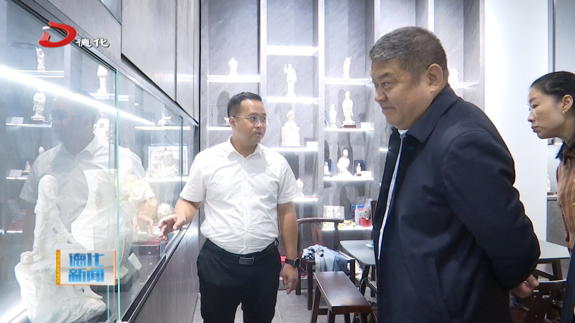 瓷艺城里大师瓷、日用瓷、工艺瓷等各式各样的精美瓷器琳琅满目,考察组一路边走边看,不时驻足欣赏、拍照留念,同时认真听取介绍,与负责人沟通交流,详细了解我县陶瓷产业发展、品牌塑造、生产经营、技术创新等情况。参观过程中,考察组对我县深厚的陶瓷文化底蕴、精湛的陶瓷技艺赞叹不已,认为德化陶瓷千年窑火不熄,承载和积淀了厚重的历史文化,正是现代陶瓷产业发展最深厚的根基所在。