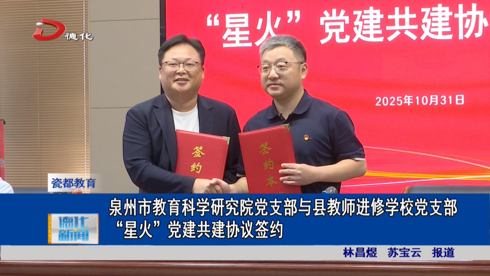 日前,泉州市教育科学研究院党支部与县教师进修学校党支部“星火”党建共建协议签约。