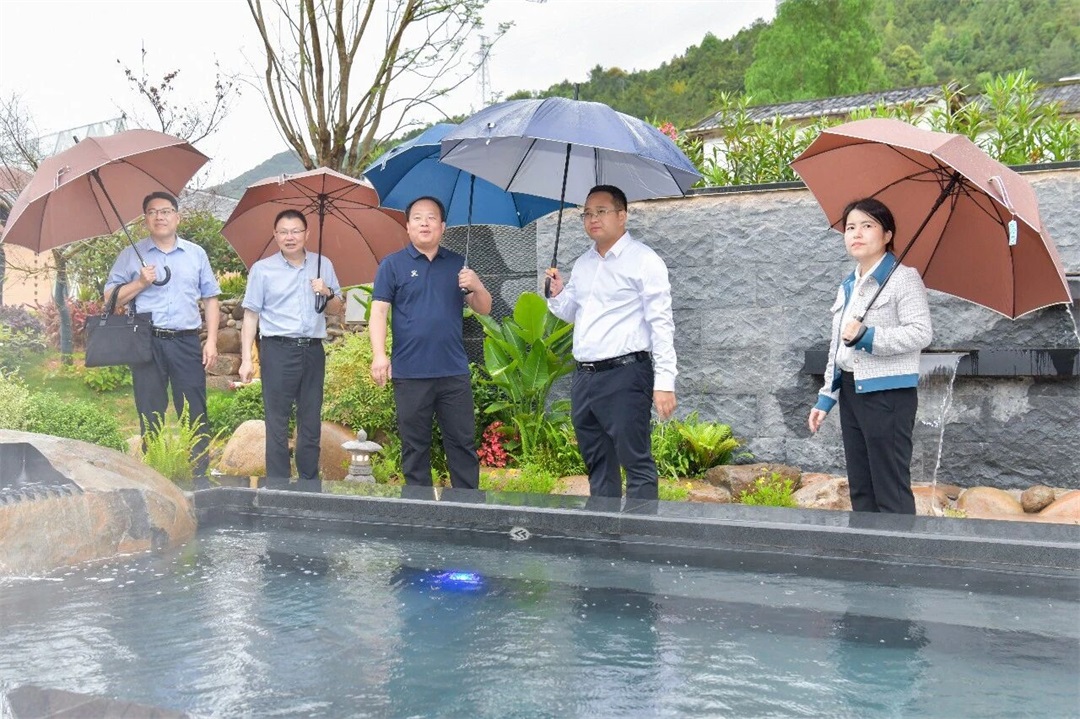 在南埕镇南埕村,方俊钦详细询问温泉水源来源、户外配套设施建设等情况,对项目生态环境和建设布局成效予以肯定,并就项目工程建设提出具体指导意见。他要求,要高标准同步推进田野艺术公社项目建设,将生态景观、乡村艺术有机融合,进一步丰富我县文旅业态,推动南埕镇温泉文旅产业集群化、高质量发展。