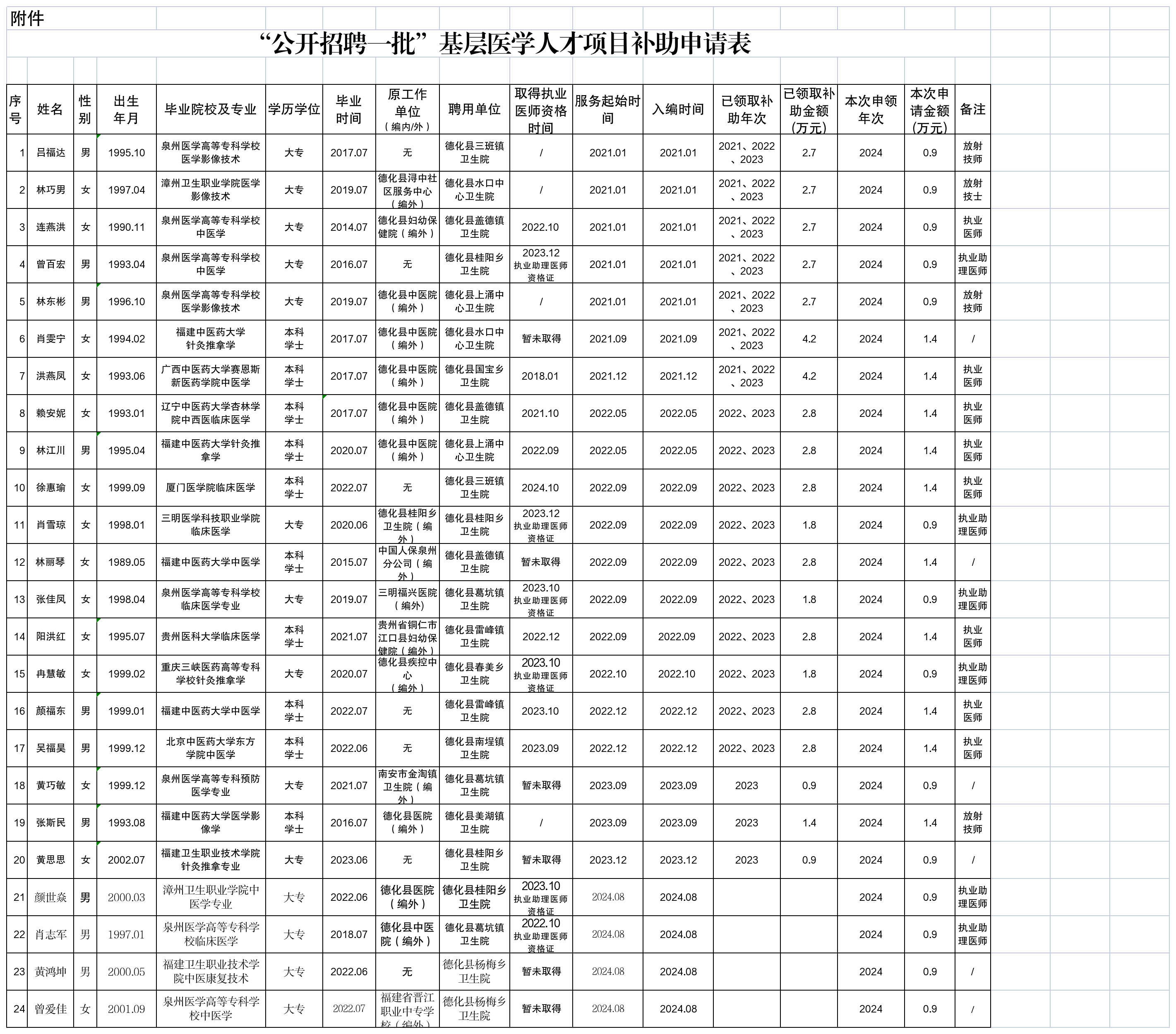 德化县2024年度“公开招聘一批”基层医学人才项目补助申报人员名单公示