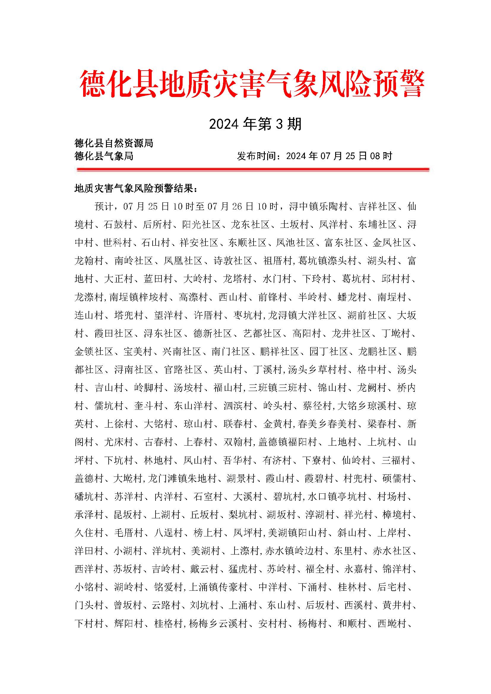 德化县地质灾害气象风险预警2024年第3期
